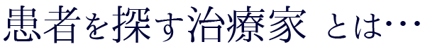 このようにいつでも患者を追い求める治療家は「患者を探す治療家」です。