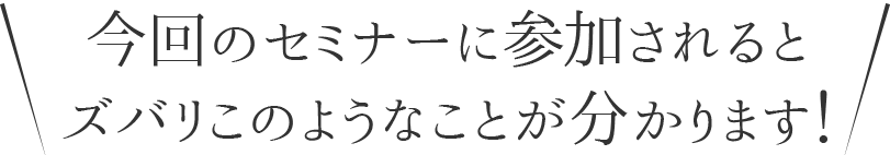 今回のセミナーでお話しさせて頂く内容をしっかりと実践して頂ければ、