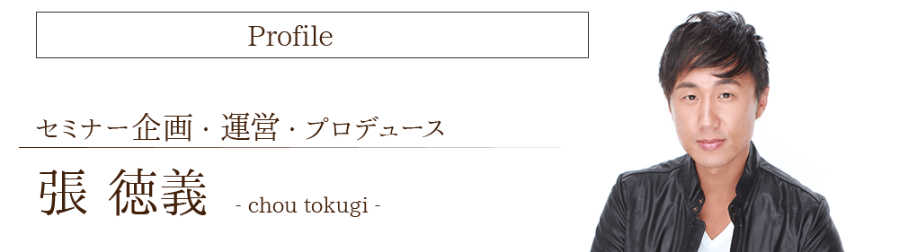 今回セミナー企画、運営、プロデュース担当 をしている張徳義と申します。