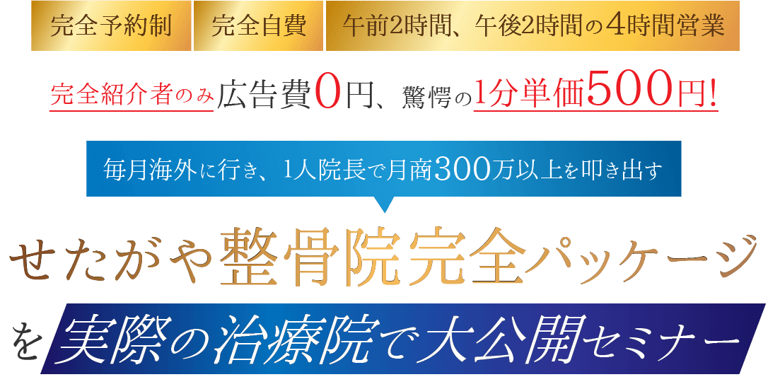 2008年に東京世田谷にて会員制のせたがや整骨院を開業。